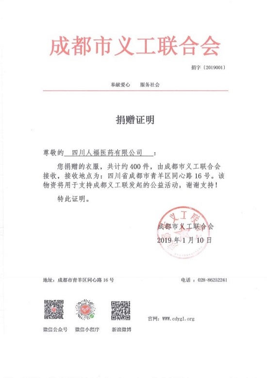 1月10號下午2:00,成都義工聯(lián)合會的工作人員來到公司,對物資進行搬運,負責(zé)后續(xù)物資的送達工作,負責(zé)人彭大哥表示,人福公司的員工們真的很有愛心,他僅代表聯(lián)合會和色達人民表示衷心的感謝!