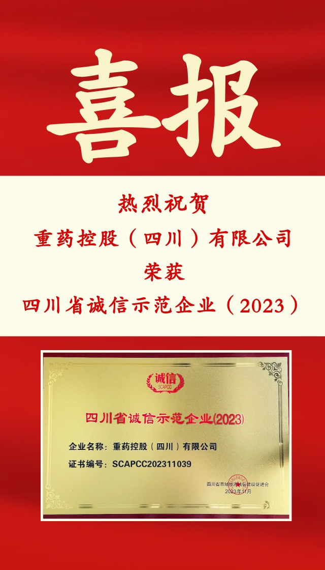 喜報丨重控四川榮獲2023年四川省誠信示范企業(yè)