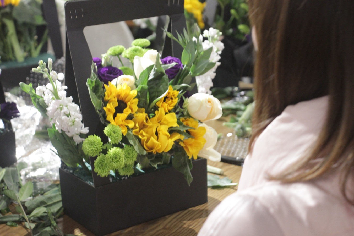 3月8日下午2點整,活動在凱樂國際4棟4樓U空間正式舉行。全體女職工準(zhǔn)時到場參加。當(dāng)女同胞們依次進(jìn)入活動現(xiàn)場時,地上鋪滿了各色鮮花,讓人十分著迷,都迫不及待的想開始插花創(chuàng)作。為了幫助大家快速掌握插花入門技巧,公司還特意邀請了資深花藝大師作現(xiàn)場分享和指導(dǎo)。